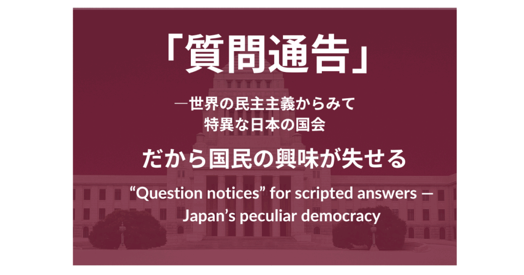 「質問通告が遅い」というデマが示す、日本政治の“逆転構造” The “Late Question Notice” Narrative Reveals a Reversed Structure in Japanese Politics 「野党の質問通告が遅い」という政府側の主張は、事実ではなかった。しかしその言い訳が、SNS上で政...